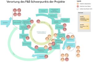 Hier steht die Entwicklung nachhaltiger Batterien im Vordergrund, die Umweltbelastungen entlang des gesamten Lebenszyklus minimieren. Ziel ist eine „grüne“ Batterie, die ökologische und wirtschaftliche Vorteile vereint.